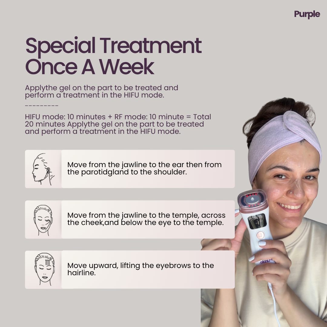 Achieve professional-grade skin tightening and facial lifting at home with the GoPurple HIFU Device – your non-surgical solution for firmer, youthful skin.